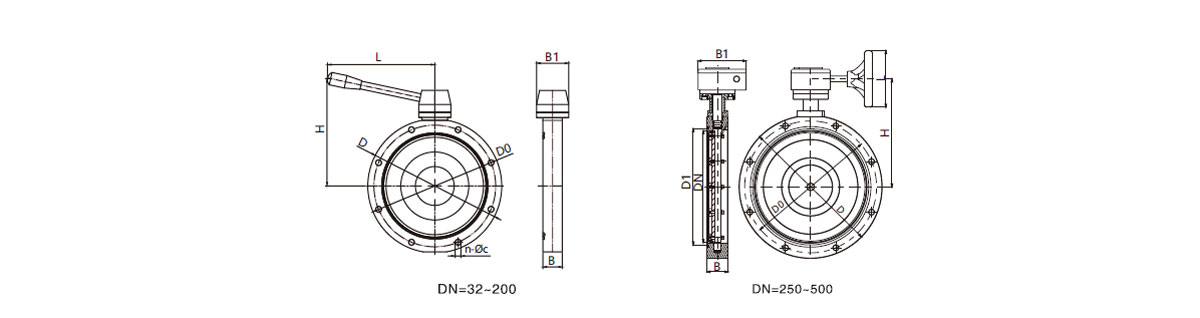 | Model for 304 | Size | D/mm | D0/mm | D1/mm | B/mm | H/mm | B1/mm | L/mm | n-Øc |