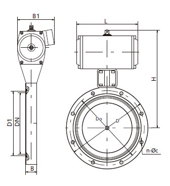 Model for 304 / Double Actuing | Size | D/mm | D0/mm | D1/mm | B/mm | H/mm | B1/mm | L/mm | n-Øc |