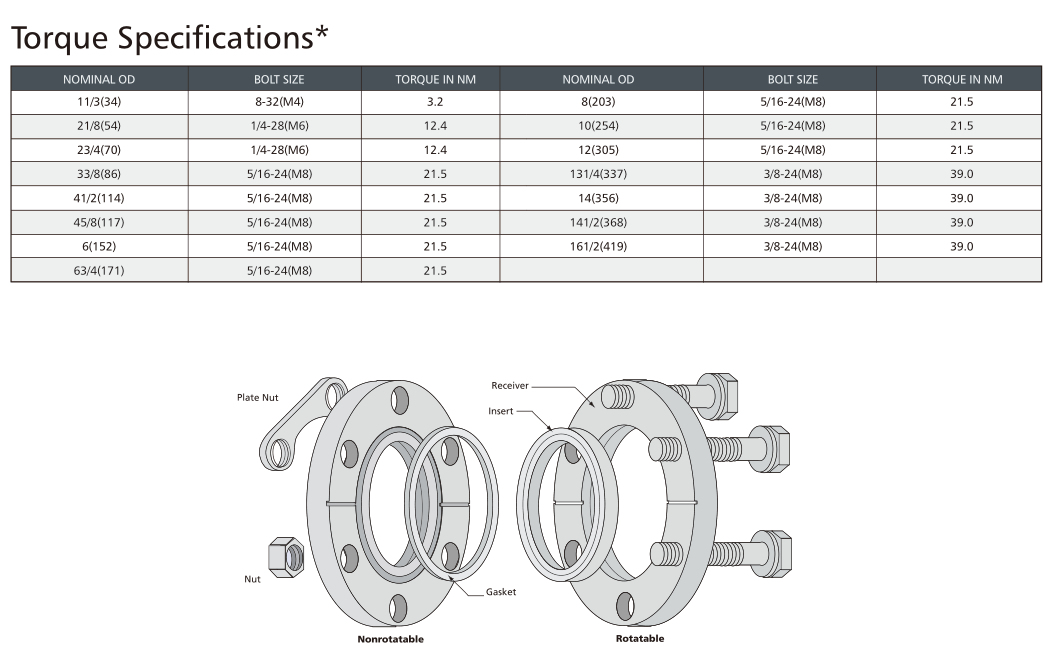 7. Tighten the bolts 1/4 to 1/2 turns using a star pattern until the flange faces are metal to metal.