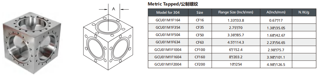 | CF800 | DN150 CF | CF160 | 8" | 304 |