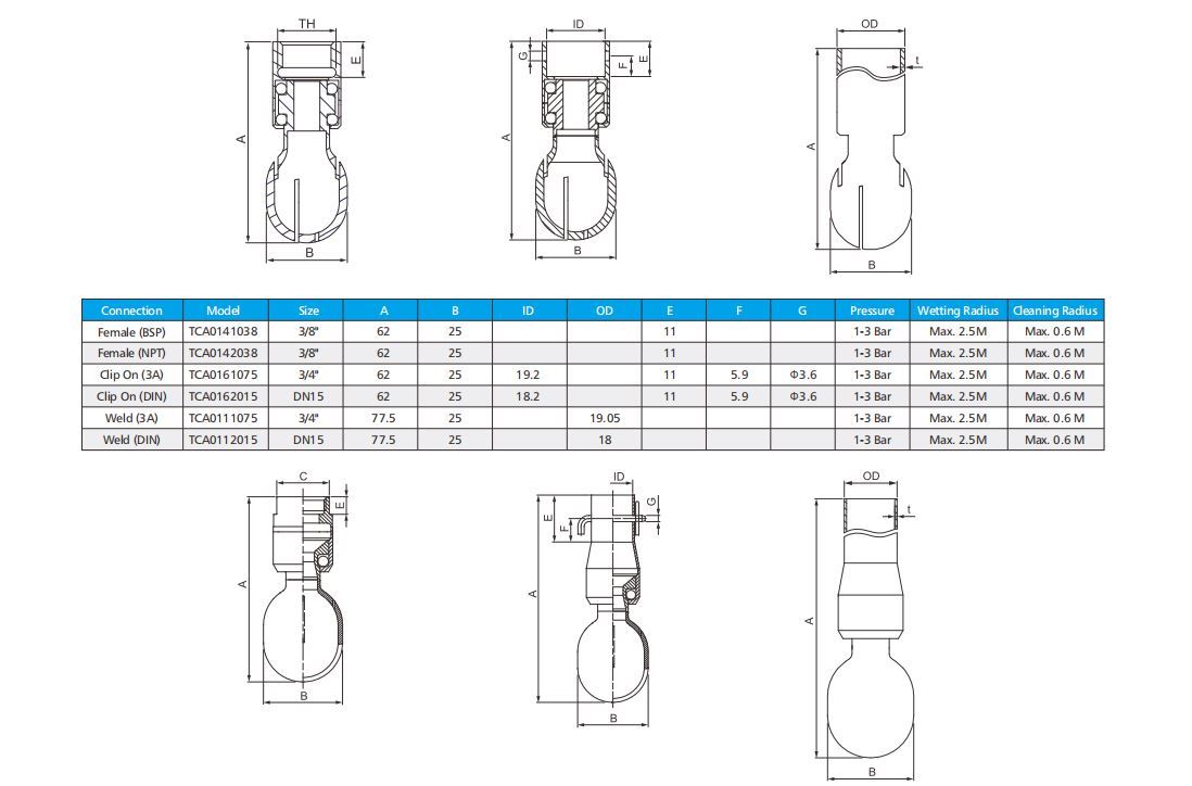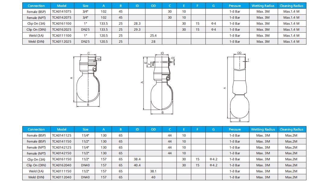 查询TCN Series sanitary fixed cleaning ball is designed for general CIP Applications.