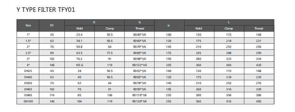 查询TFY Series y type filter is mainly used for filtering liquid with solid particles, protecting the pump, instruments and other devices to work properly.
