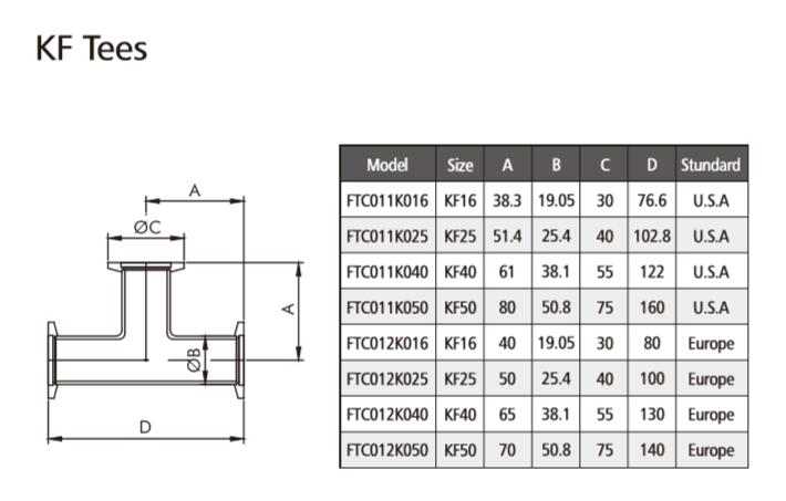 The ISO-KF system is a modular, building block method ofcreating a piping system. There are several advantages in the use of ISO components. Since component dimensions are standardized, elbows,tees, crosses or valves for a given size may be interchanged. The flanges are ''sexless'' and the seal is symmetrical, so that the components are rotatable. By using ISO components, system assembly is quick and cost effective. See Figure 1 for the ISO dimensions of flange sizes 10, 16, 25, 40 and 50. These dimensions apply to ISO-KF flanges of these nominal diameters throughout this catalog.