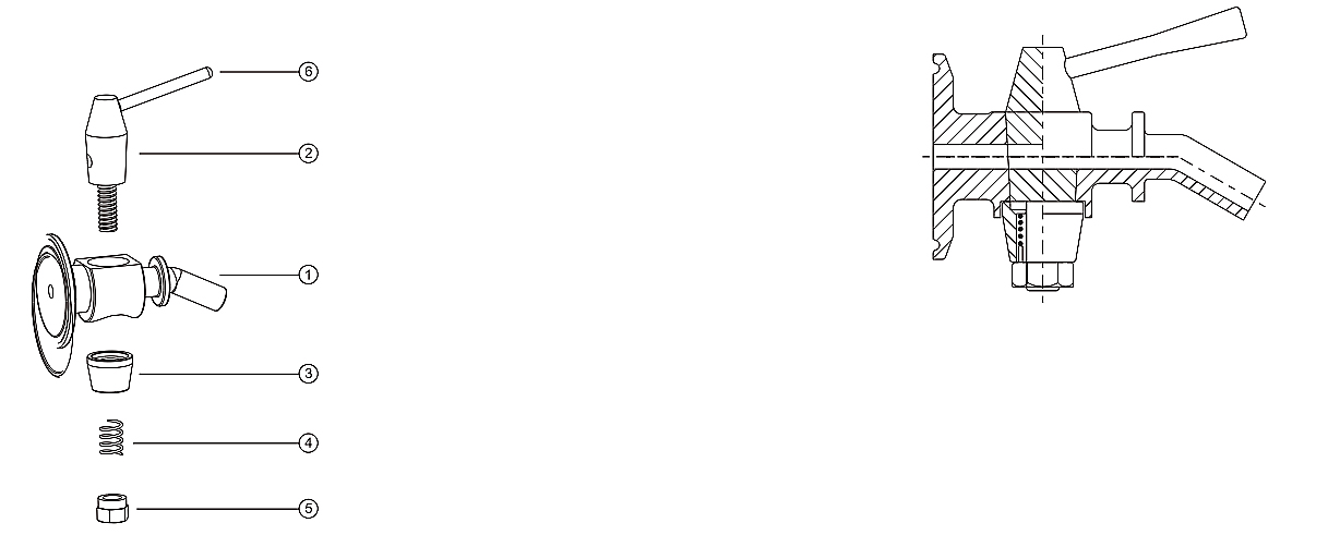 ·VSB 啤酒厂用取样阀,带用于连接尾管的唇形接头