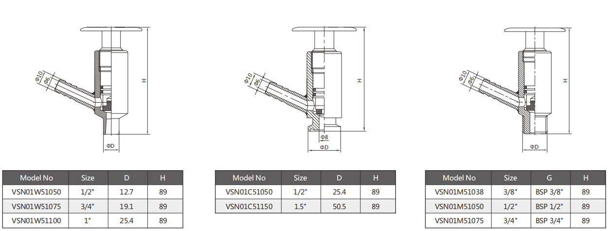 查询VSN Sampling Valves are used in piping systems or on tanks for sampling. It is used for low viscosity materials, such as water, beer, wine, fluid milk and so on.