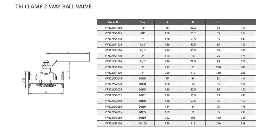 查询VFN Two Way Sanitary Ball Valve has a full port design to reduce turbulence and pressure drop through the valve. The hygienic design is widely used in the field of food processing, beverages, fruit juices, wine.