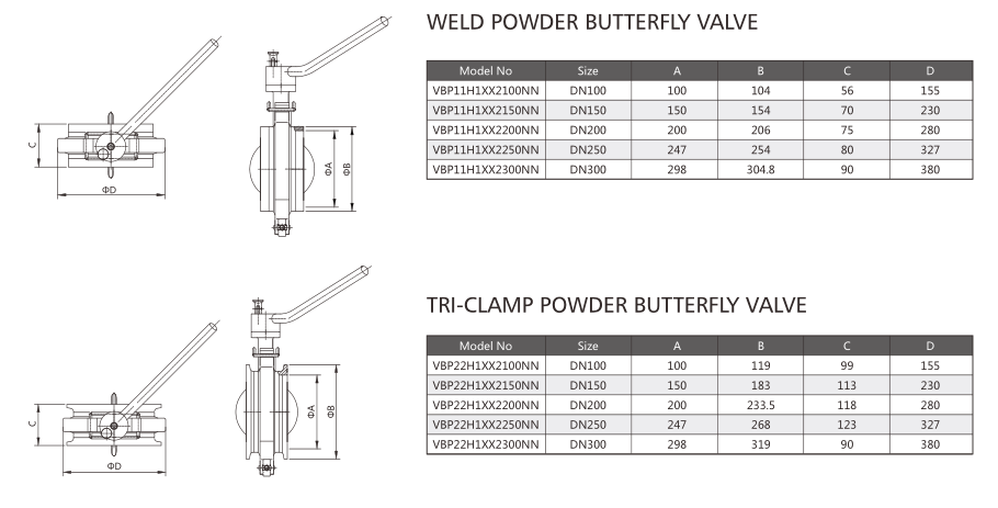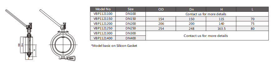 查询VBP series butterfly valve is a type of flow control device, used to make a fluid start or stop flowing through a section of pipe. It is well applied to stainless steel pipe systems for food,