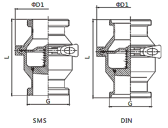 当阀芯下方的压力超过阀芯上方的压力和弹簧力时,止回阀打开。当压力平衡后,阀门关闭。