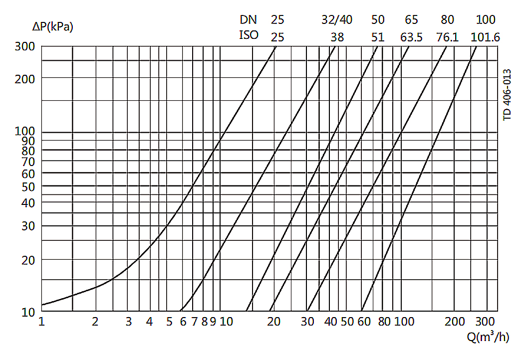 | 止回阀的容积流量:单位时间内流过阀门的流体横截面积。 | 流量:立方米/小时( m³ /h)详细技术数据,请参考(图表)。 | ||