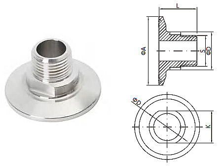 三叶草三通接头转NPT 1/2"外螺纹适配器,SS304材质,带铣槽 - 卡箍套圈 - 不锈钢三通卡箍套圈 - 在中国QM Stainless购买卫生级套圈、卡箍接头、乳制品和食品配件产品...
