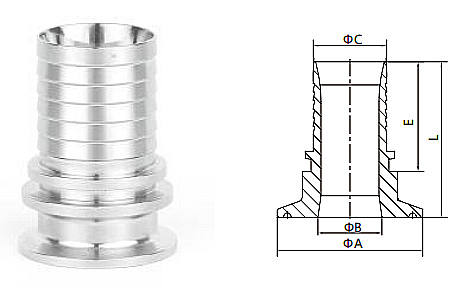 1½英寸卫生级软管倒钩接头,不锈钢SS304软管接头,1个装,UPC:708210460576