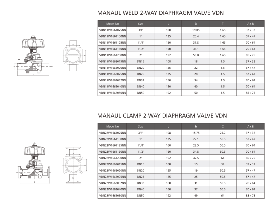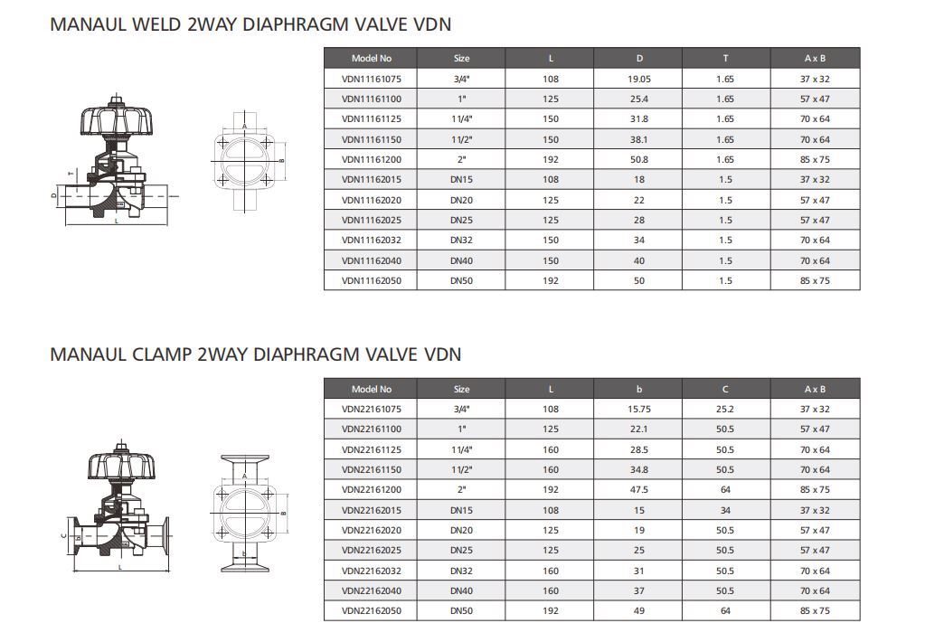 VDN series is a sanitary diaphragm valve , specially designed for using on food, beverage, dairy, brewing...