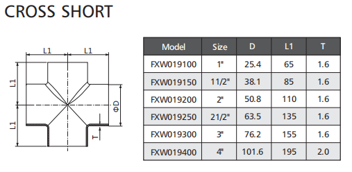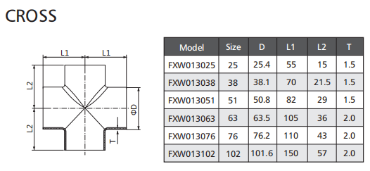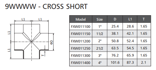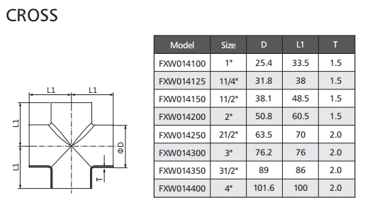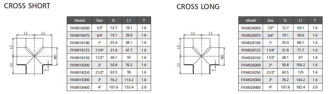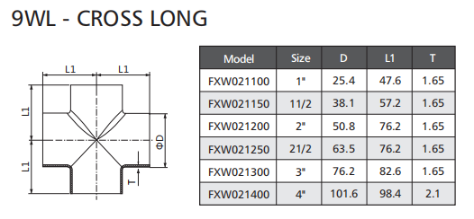 查询Weld Fittings are used on permanent installations where process piping and equipment can be cleaned in place (CIP) and removal from the system is not required. Weld Fittings are offered in nominal tube sizes 1/2˝ through 8˝ in T304 and T316L materials. Uniform wall thickness for 1/2˝ through 3˝ sizes measure .065 (16 ga). In 4˝ size, wall thickness measures. 083 (14 ga), 6˝ and 8˝ .109 (12 ga).