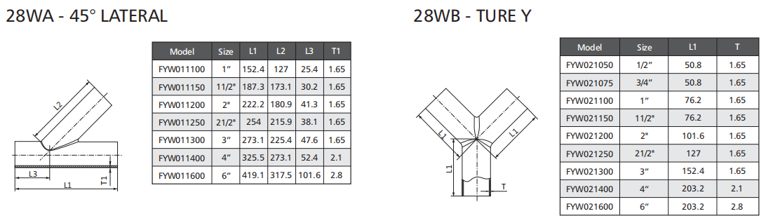 查询Weld Fittings are used on permanent installations where process piping and equipment can be cleaned in place (CIP) and removal from the system is not required. Weld Fittings are offered in nominal tube sizes 1/2˝ through 8˝ in T304 and T316L materials. Uniform wall thickness for 1/2˝ through 3˝ sizes measure .065 (16 ga). In 4˝ size, wall thickness measures. 083 (14 ga), 6˝ and 8˝ .109 (12 ga).