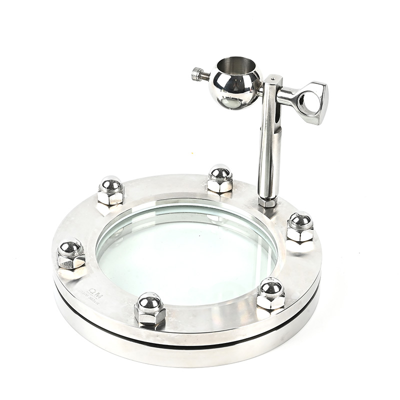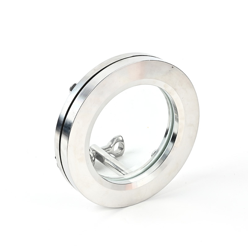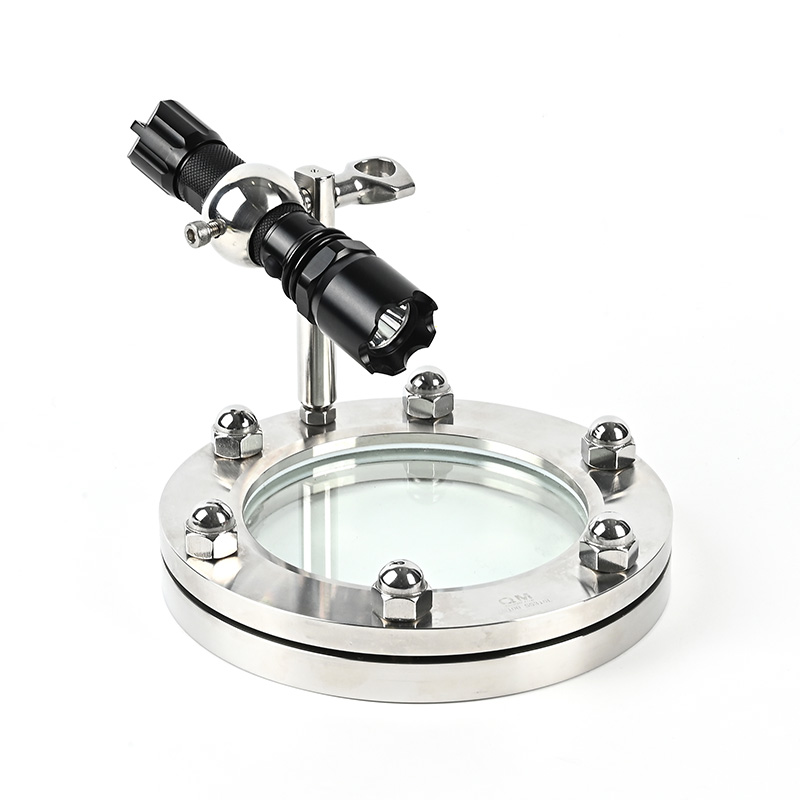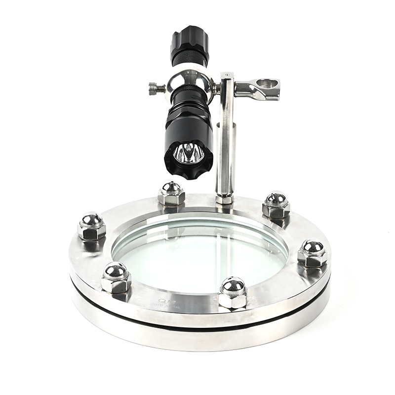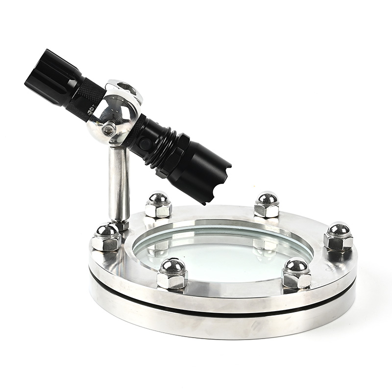 法兰式视镜,带LED灯,SS304/SS316L材质,圆形垫片,不锈钢卫生级法兰,钢化钠钙玻璃刮片可选