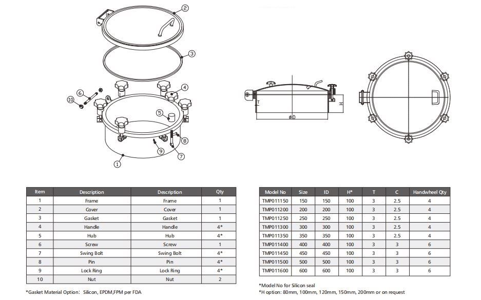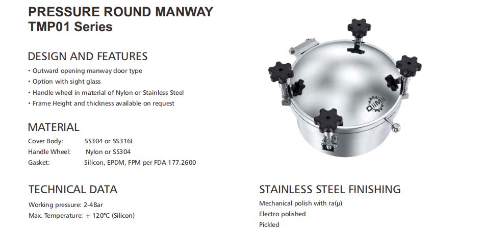 Application TME03 Series manhole cover is used on tanks or containers, especially in the dairy industry, ...