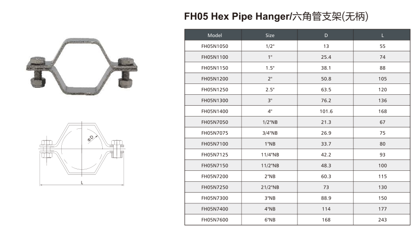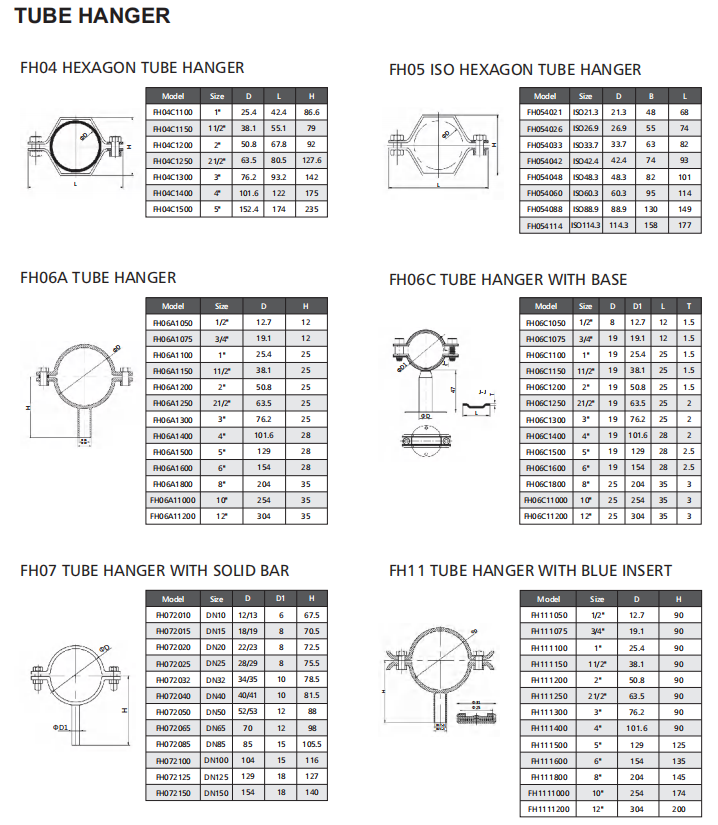 • Tube hanger type: Round, Hexagon, with rubber insert