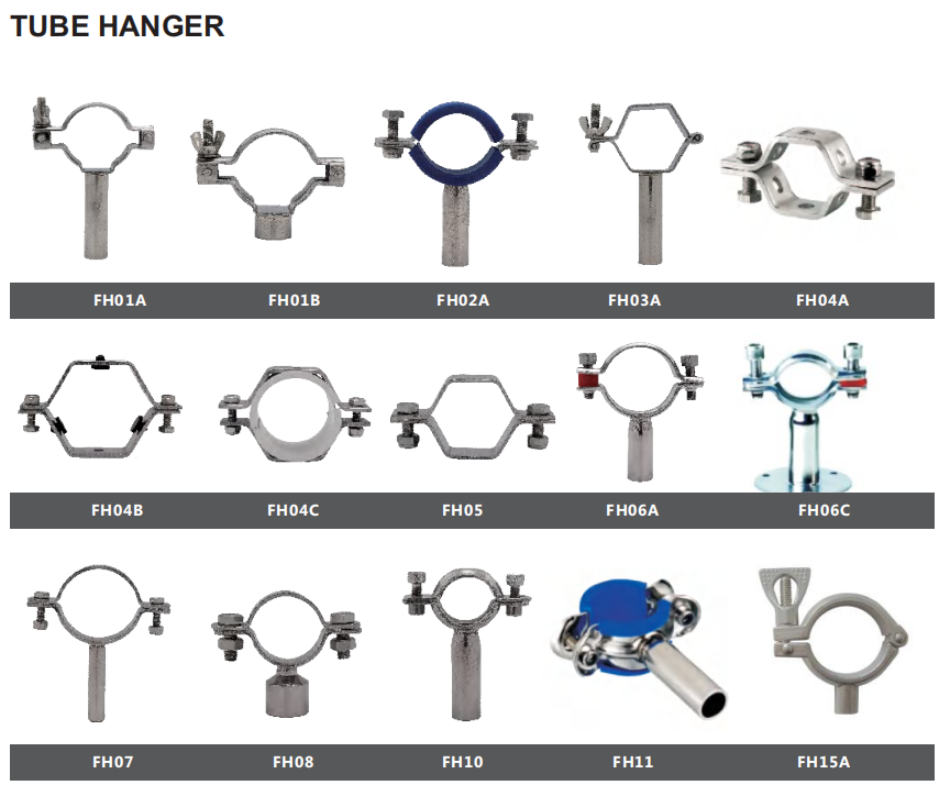 FH series tube hangers with different design, widely used on dairy, beverage, foodstuff, pharmaceutical and other industries.