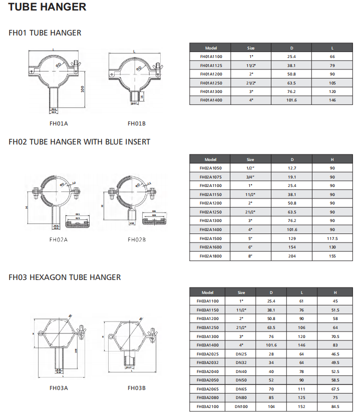 FH series tube hangers with different design, widely used on dairy, beverage, foodstuff, pharmaceutical a...