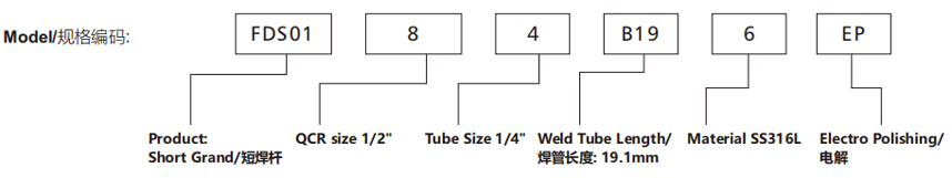 Short Grand QCR 1/2" xtube O.D. Size 1/4", weld tube length =19.1mm, SS316L and Electro Polishing